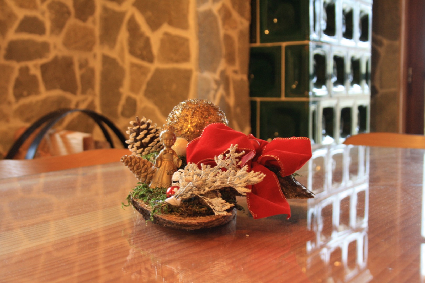 Kompletna kuhinja, blagovaonica, dio zidova i drvenih podova, sve je to ručni rad od drva. Uz mnoštvo rustikalnih detalja, kao što su luster napravljeno od kotača starih zaprežnih kola, kao i obnovljeni jaram za volove koji sada služi kao dekoracija, tu je i potpuno obnovljena, presložena i više nego funkcionalna kaljeva peć koja zimi ugrije cijelu kuću.